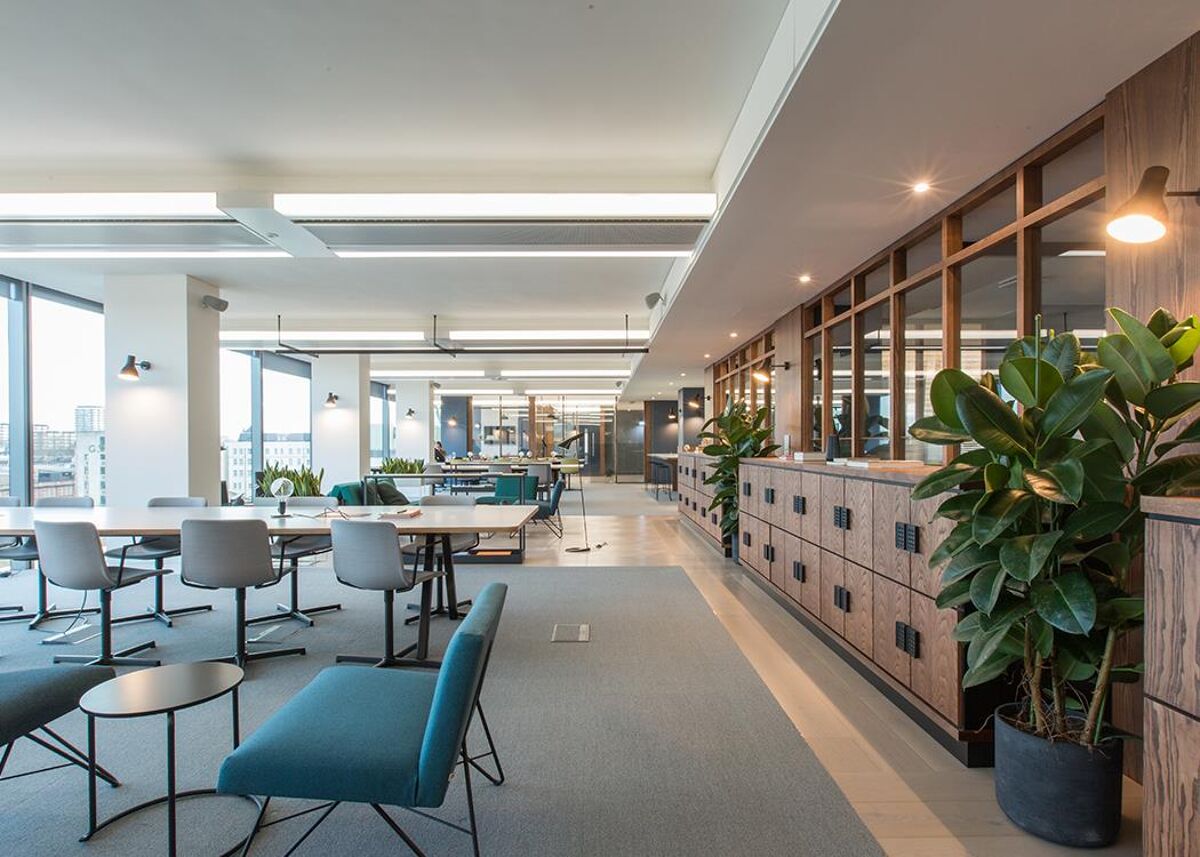 The building has been stripped back and refreshed to create a light and roomy space with a striking Scandi inspired ‘Sky Garden’ style. On offer is a mix of flexible workspace with panoramic city views. There are co-working spaces, studio offices ideal for start-ups, focus booths, event spaces and meeting rooms. There is also a café, access to a 2,000 sq. ft. roof garden showers and space for 160 bikes.